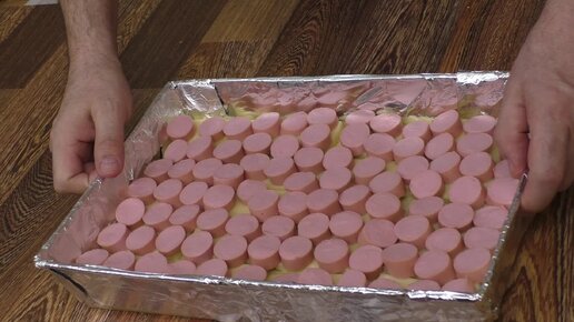 1200гр. картошки, 400гр. сыра и 8 сосисок - это вкусно.