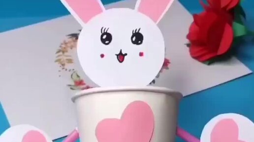Очень симпатичный зайчик-стаканчик. Поделка