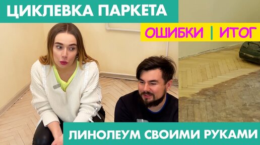 Шлифовка советского паркета - что из этого вышло - ШОК и наши ошибки | Циклевка и белый лак | Укладка линолеума своими руками #9