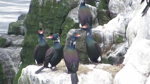 Большая удача: в кадр попали краснолицые бакланы