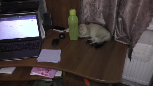 Котенок пришел ко мне на стол спать.