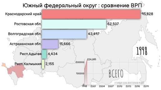 Южный федеральный округ.Сравнение ВРП по регионам.Валовой региональный продукт.Статистика