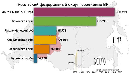 Уральский федеральный округ.Сравнение ВРП по регионам.Валовой региональный продукт.ВРП УФО