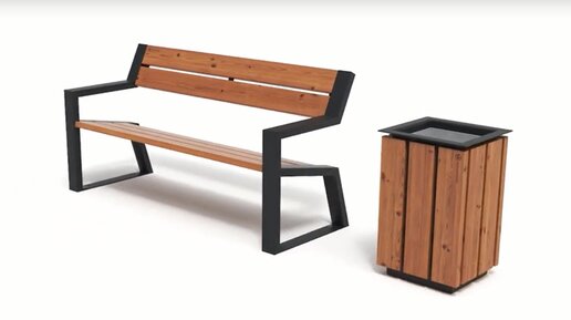 Скамейка Mountain 1600 и урна Forest от MIROZDANIE®