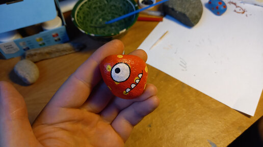 Рисование на камнях. Зубастик