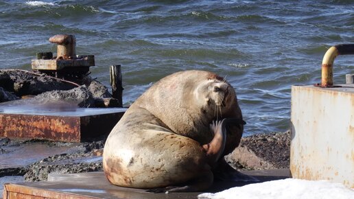 Сивуч решил почесать за ушком. Снято на Камчатке