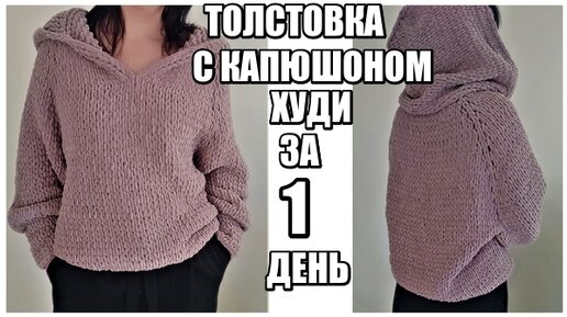ЗА 1 ДЕНЬ СПРАВИТСЯ ШКОЛЬНИК.Свитер с капюшоном без крючка и спиц.Худи.Толстовка из Alize Puffy Fine