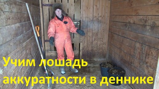 Учим лошадь аккуратности в деннике.