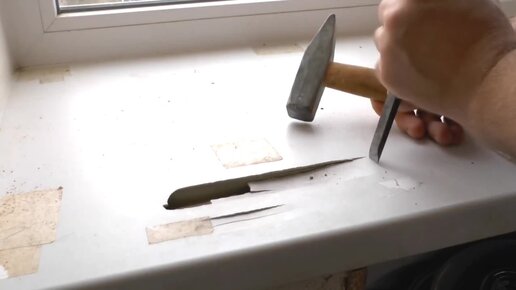 Ремонт пластикового подоконника УФ смолой
