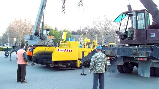 Севастополь 2013. Погрузка асфальтоукладчика после завершения ремонта проспекта Нахимова