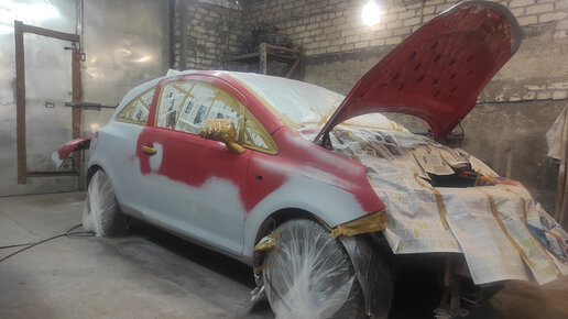 Полный ремонт Опель Корса подготовка, покраска, конечный результат.
