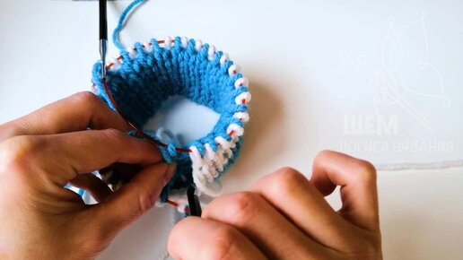 Двухцветная полая резинка по кругу. Особенности вязания.