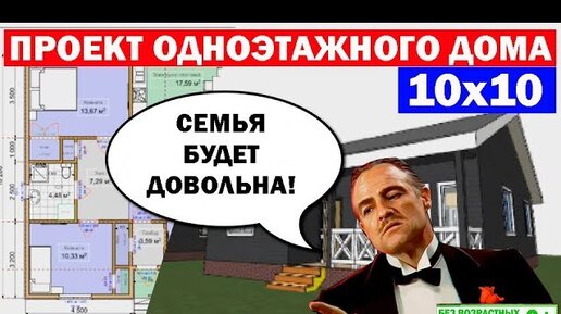 Проект одноэтажного каркасного дома 10 на 10 метров. Построй Себе Дом.