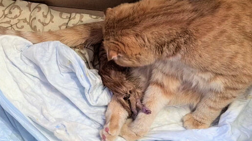 РОДИЛСЯ ВПЕРЕД НОГАМИ! Фокси кошка родила котенка сложные роды