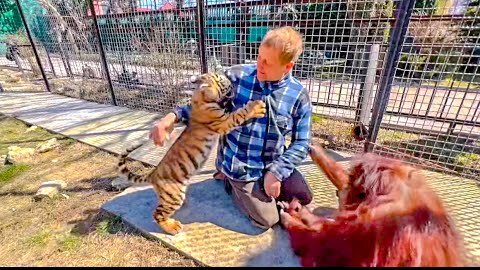 Как Олег Зубков общался с орангутаном Даной и её приемышем -тигрёнком!