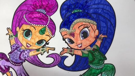 Раскрашиваем Шиммер и Шайн из мультика Shimmer and Shine джины, волшебницы в кувшине.