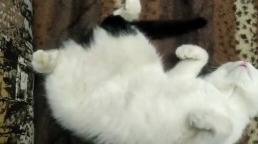 Кошка Клеца спит крепким сном. Разбудили, а кошка дольше спать.