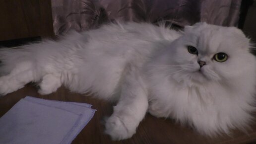 Белая, пушистая, вислоухая "белочка" у меня на столе.