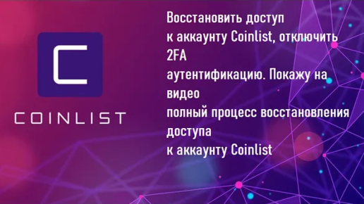 Восстановление доступа к аккаунту Coinlist. Отключить 2FA, на видео полный процесс.