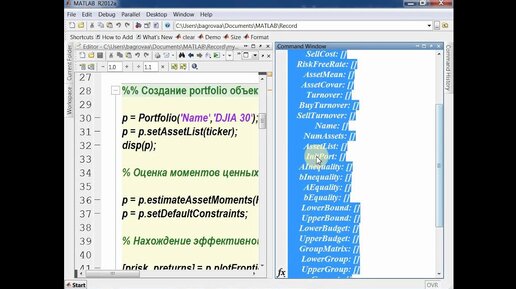 Оптимизация портфеля в MATLAB