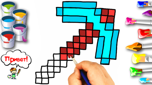 КАК НАРИСОВАТЬ КИРКУ ИЗ МАЙНКРАФТ / HOW TO DRAW A MINECRAFT PICKAXE / РАСКРАСКА ДЛЯ ДЕТЕЙ