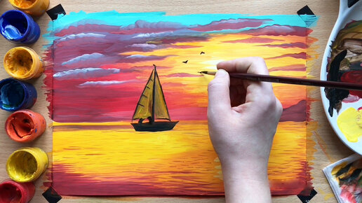 Как нарисовать красивый морской закат гуашью. Видео МК.