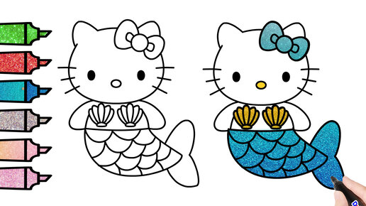 Как Нарисовать Русалку Хелло Китти. Уроки рисования для детей поэтапно. Обучающее видео. How to draw Hello Kitty Mermaid.