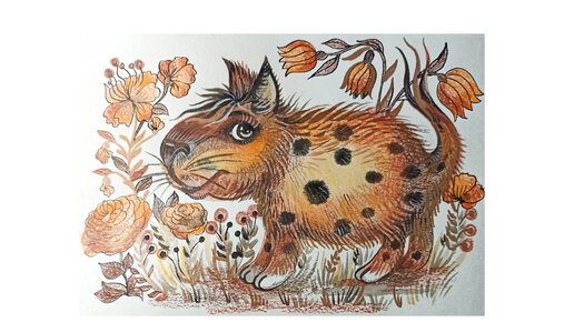 Инопланетный зверь. Рисунок красками и тушью.