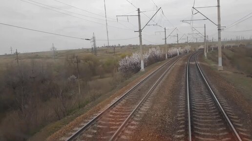 В Ростовской области, зацвели абрикосы. А как у вас? Вид из кабины электровоза