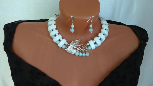 Украшение "Ландыш серебристый" Кахолонг ,перламутр. кварц.