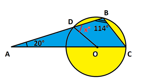 Найти величину угла ODB. Точка О -центр окружности.