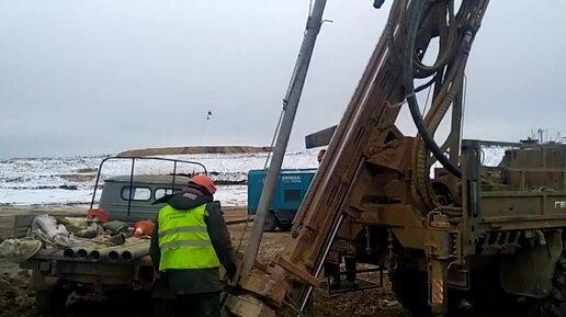 Буровая установка УГБ-505-010 производства Геомаш в работе. Месторождение Пещерное Свердловской области.