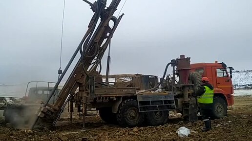 Буровая установка УГБ-505-010 производства Геомаш в работе. Месторождение Пещерное Свердловской области.