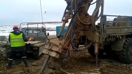 УГБ-505-010 буровая установка производства Геомаш в работе. Месторождение Пещерное Свердловской области.