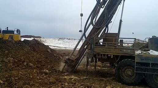 Буровая установка УГБ-505-010 производства Геомаш в работе. Месторождение Пещерное Свердловской области.