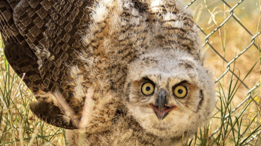 Маленький Чеви повредил крыло, когда учился летать. Спасателям пришлось забрать совенка к себе, чтобы на него не напали койоты