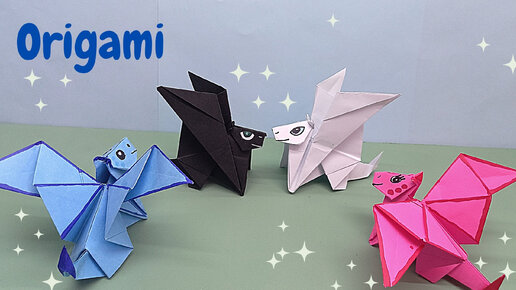 Оригами дракон из бумаги, который машет крыльями. Интересная поделка для детей