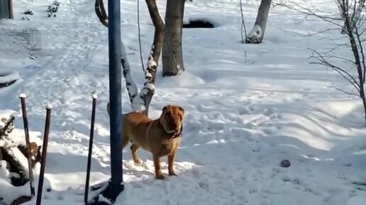 Собаки породы шарпей и немецкий боксер, радуются снегу в марте!