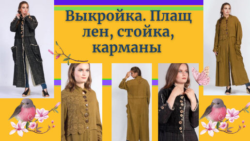 Выкройка весеннего пальто без подкладки из ткани лен.Спущенное плечо.Углубленная пройма.