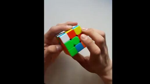 Молодой человек собирает кубик Рубика.