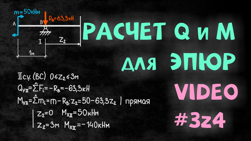 Расчет значений внутренних силовых факторов, поперечных сил Q и изгибающих моментов M методом сечений РОЗУ