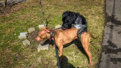 Спаниель прибежал на вязку к питбулю