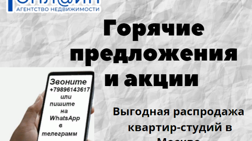 Актуальные предложения о продаже квартир-студий в Центре Москвы и ещё одна акция с хорошей скидкой