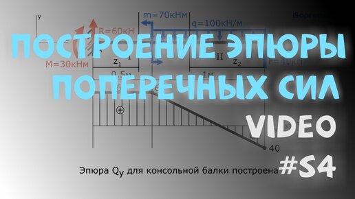 Построение эпюры внутренних поперечных сил Qy для консольной балки. Решение задачи по сопромату