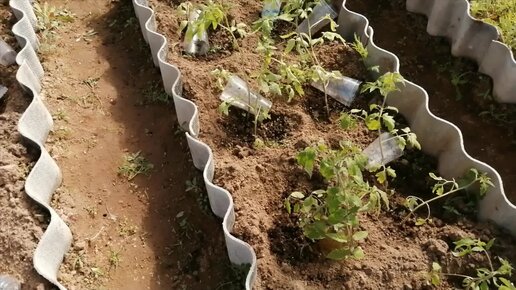 Высадка рассады томатов в теплицу.