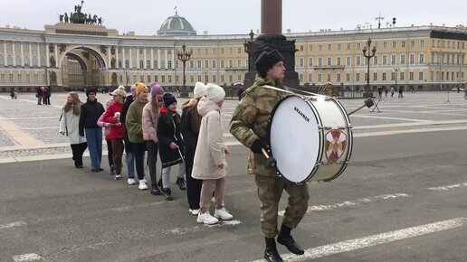 Неожиданные участники тренировки оркестра Северо-Западного округа Росгвардии к Параду Победы. Барабан был плох, барабанщик - бог