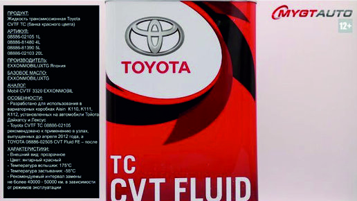 Жидкость трансмиссионная Toyota CVTF TC (банка красного цвета) 1L 08886-02105 #ANTON_MYGT
