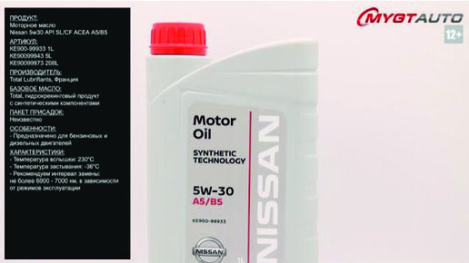Моторное масло Nissan 5W-30 API SL/CF ACEA A5/B5 KE900-99933 #ANTON_MYGT