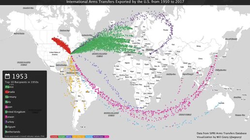 ⚠Информативная визуализация по поставкам Американского вооружения по всему Миру с 1950 по 2017 годы