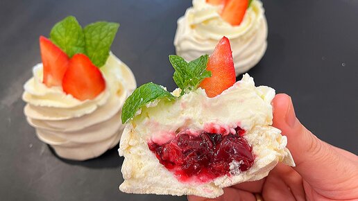 Пирожное Павлова! Как правильно приготовить меренгу ? Секрет на видео подробно показано!
